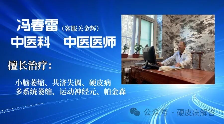 目前冯春雷医生从医三十余年,深得广大患者信赖,擅长应用中医理论、实践与自身的临床经验相结合的方式,针对疑难杂症以及各种多发病,涉及中医内科,外科,皮肤科等,尤其对痿证(小脑萎缩共济失调、多系统萎缩)、痹证(硬皮病、风湿病)、神经免疫系统疾病有独特见解,并获广大患者一致好评!